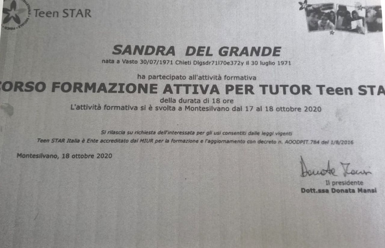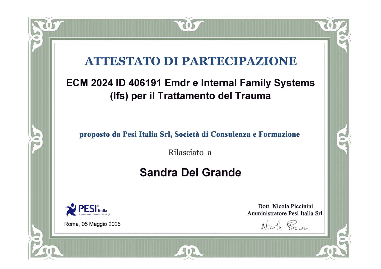 • Specialista certificata iscritta nell’elenco dei professionisti con Evergreen Certification per la gestione della rabbia in bambini e adolescenti